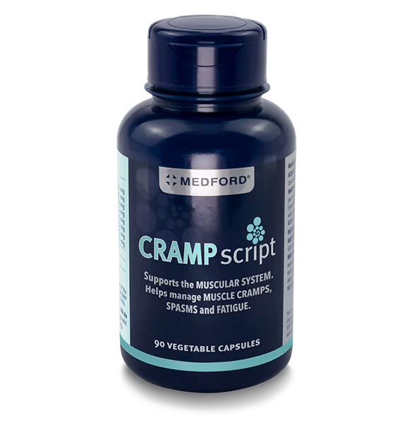 CrampScript supports the muscular system – helps manage muscle cramps, spasms and fatigue.