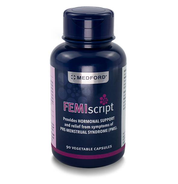 FemiScript was developed to support a healthy female hormone cycle and may reduce the symptoms of premenstrual syndrome (PMS), menstrual cycle imbalances and assist in the perimenopause transition.