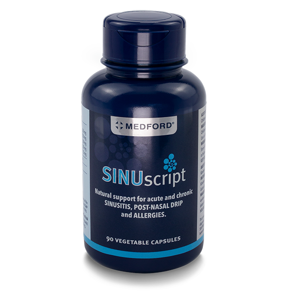 SinuScript delivers natural support for acute and chronic sinusitis, post-nasal drip and allergies.